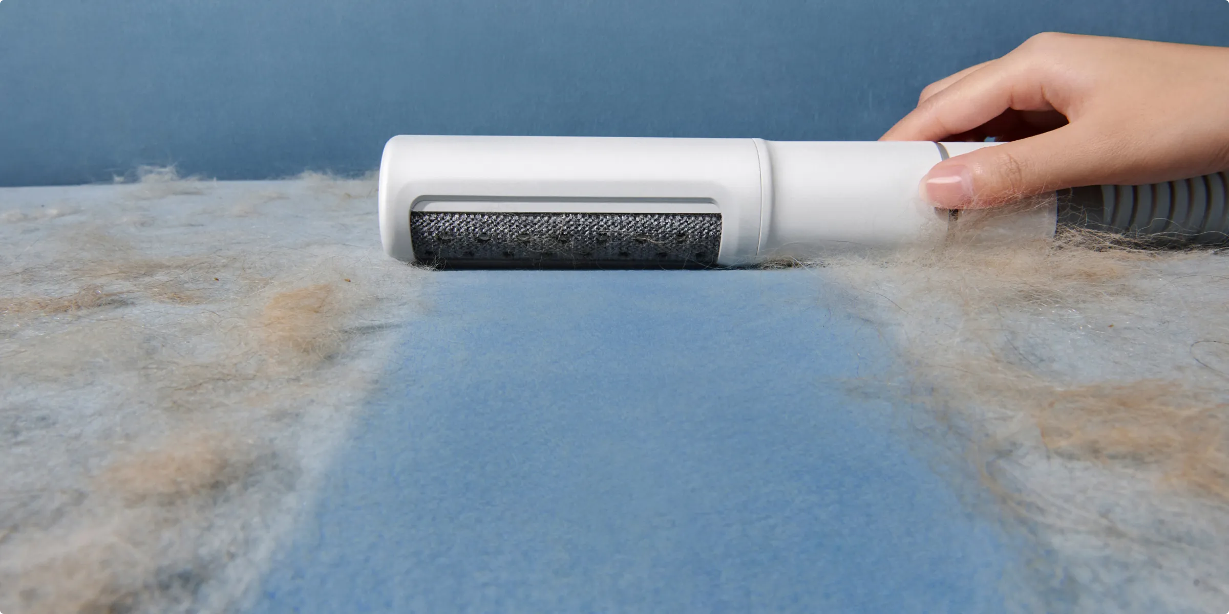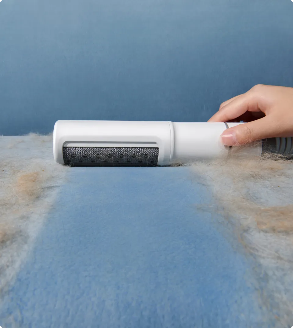 Easily removes pet hair from fabric surfaces using electrostatic principles.
