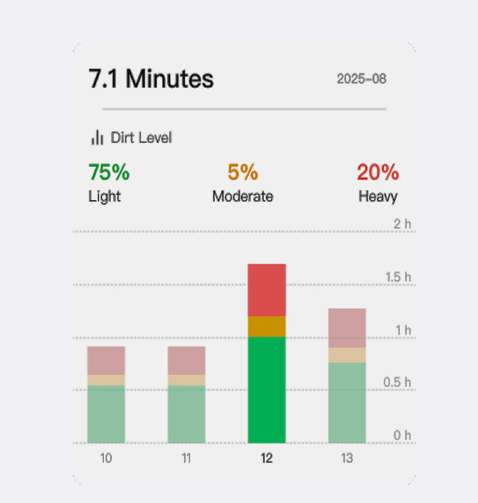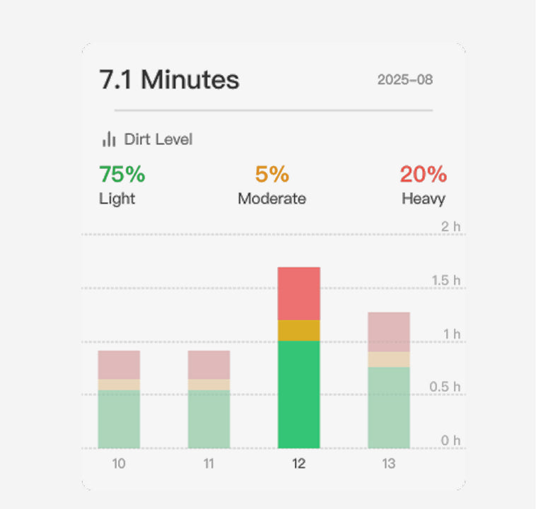 Record each cleaning session’s duration, mode, and usage for easy viewing and analysis.