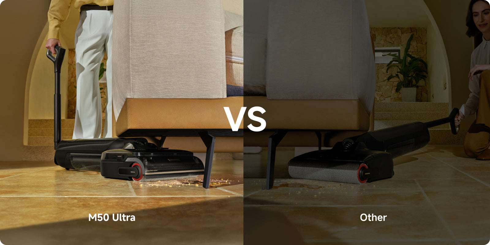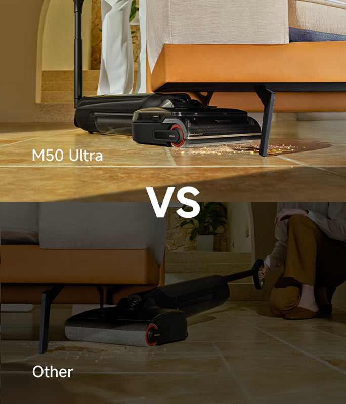 The M50 Ultra boasts an impressive 22,000Pa suction power, effortlessly handling a wide range of messes—whether wet or dry, surface or ingrained. Additionally, it applies about 20N downward pressure to scrub your floors, effectively removing even the most stubborn stains.