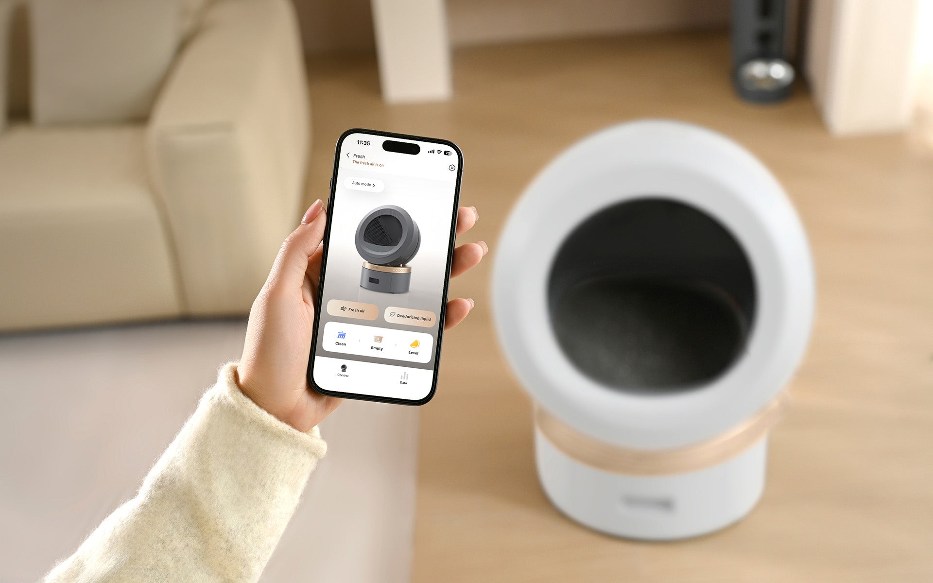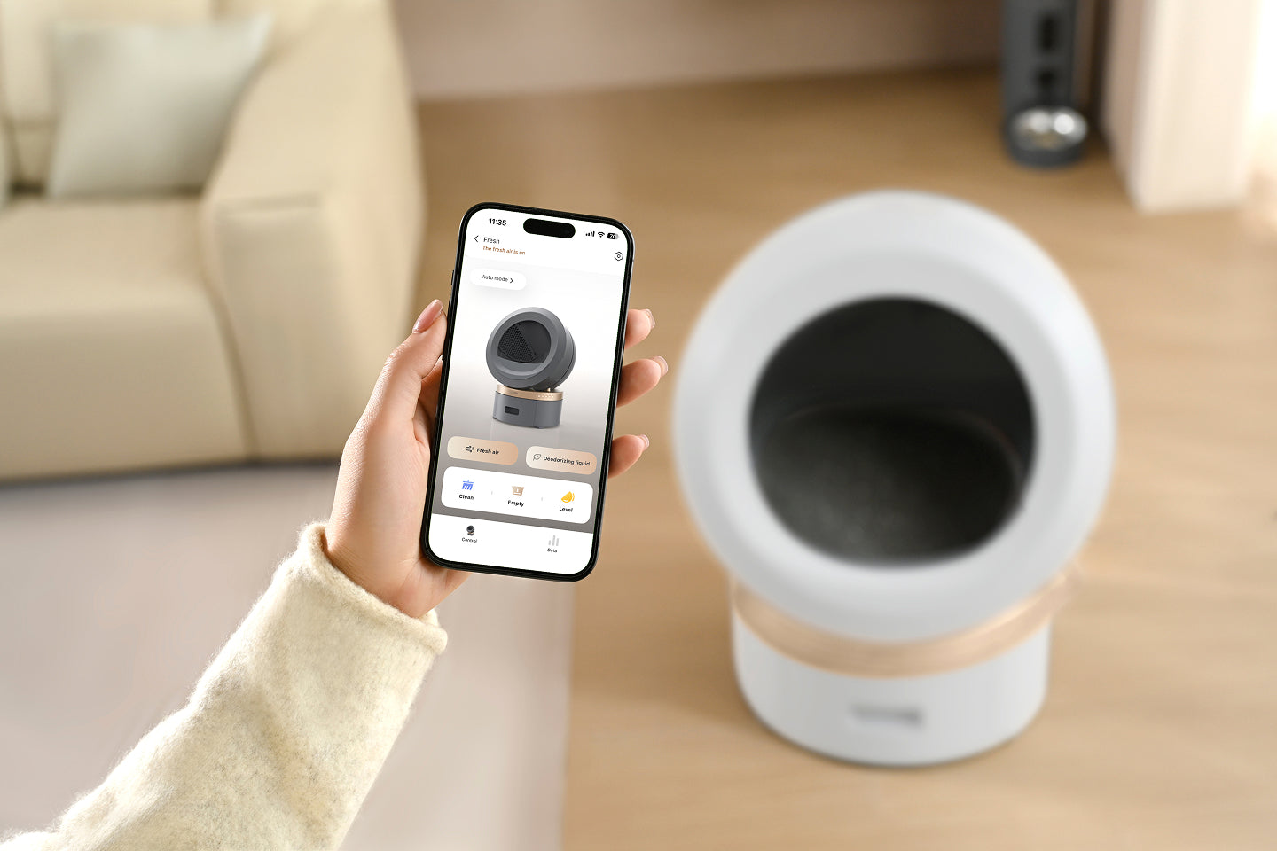 The user can adjust the deodorization and soft stool functions as needed. The equipped auto self-check detects anomalies or supply vacancies. Whether you are out on vacation or at work, you can operate it in real time.