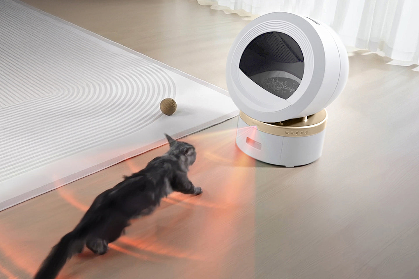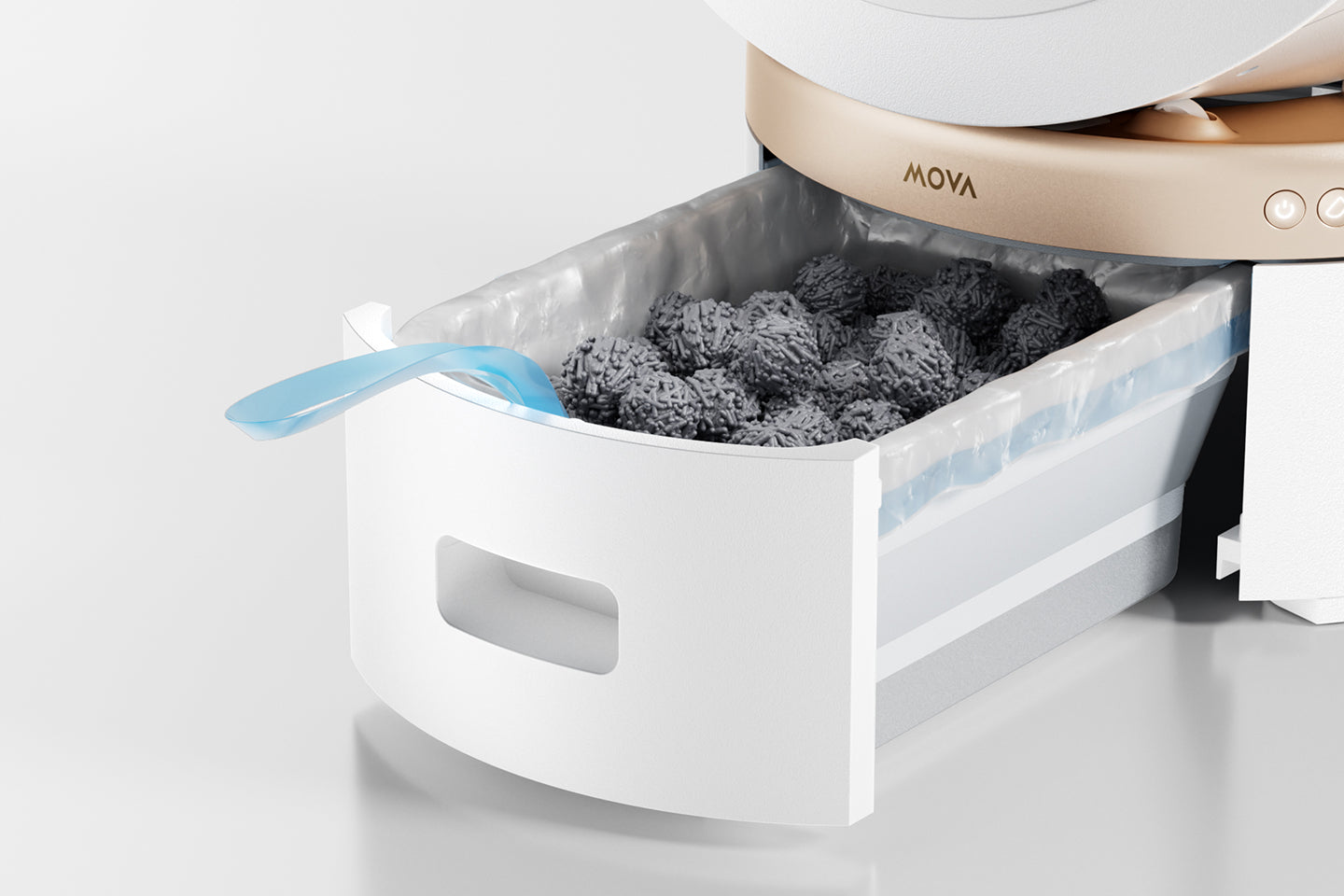 The top-mounted handle lets you lift out with one simple pull. The plastic ball bin and litter basin can be rinsed in seconds, then quickly snapped back into place, with no hand contact with cats' waste.