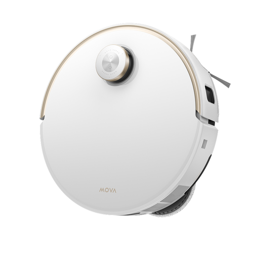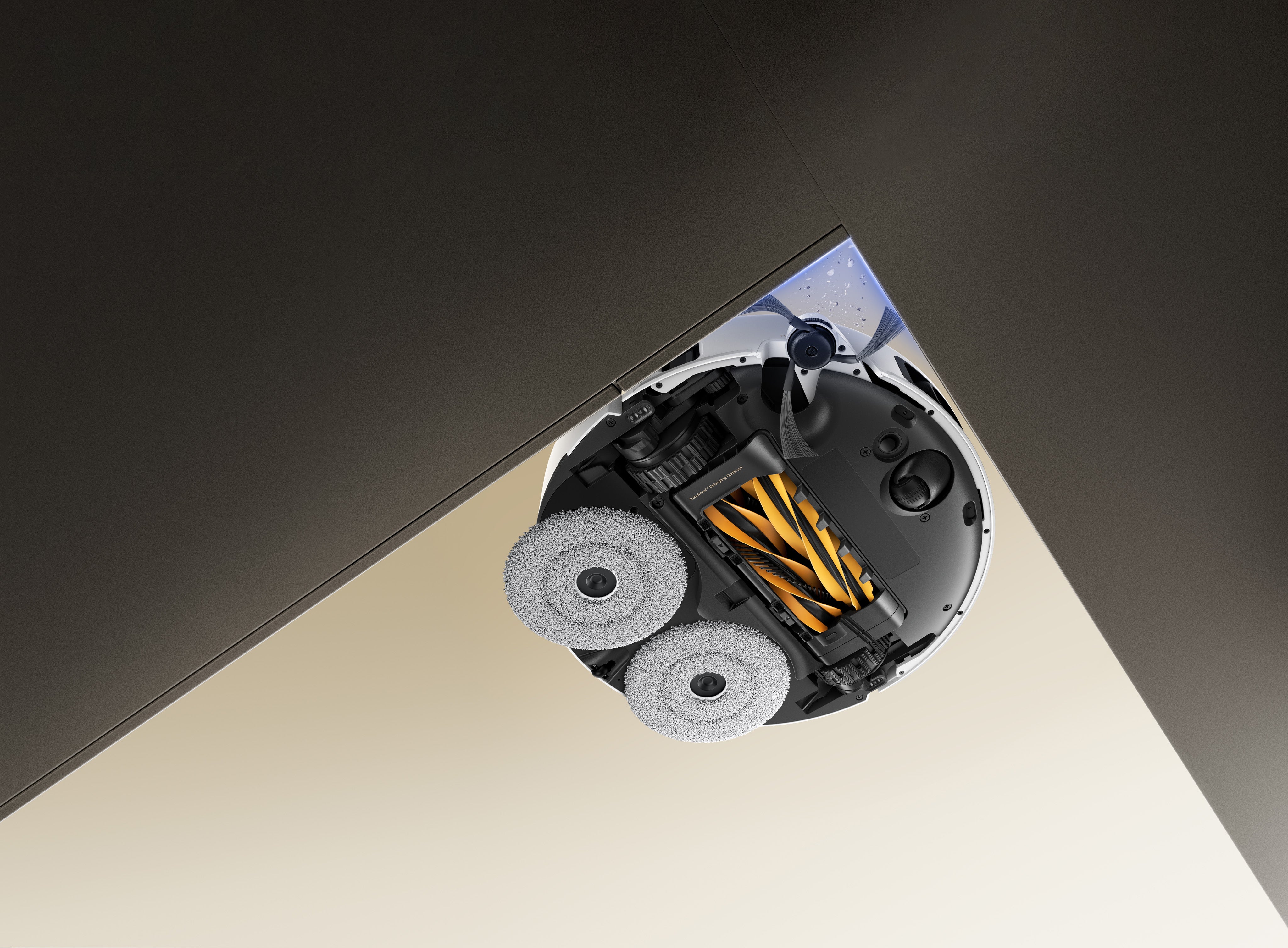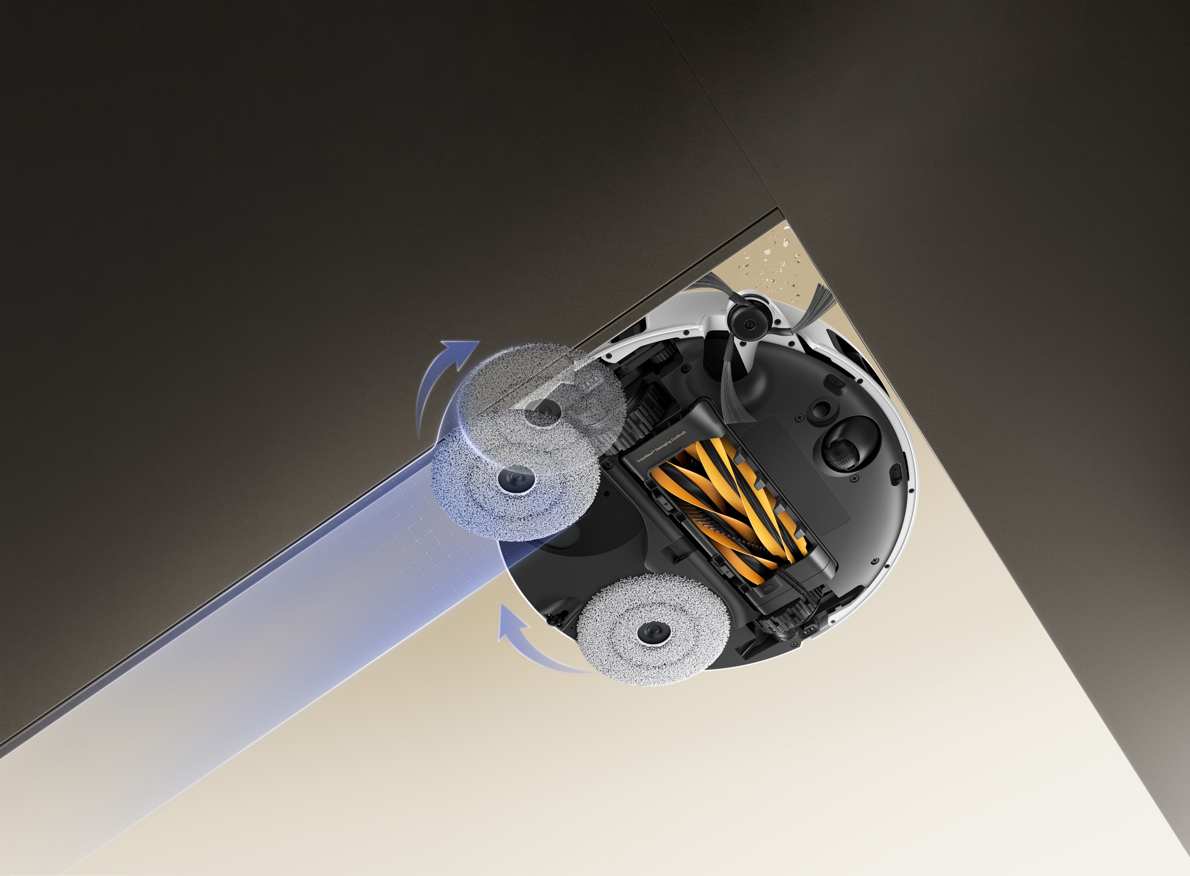 Plus, when crossing thresholds, main brush, side brush, and mop all lift to assist passage.
