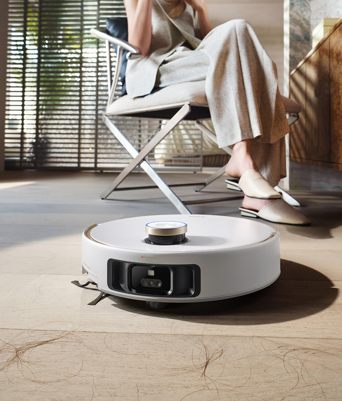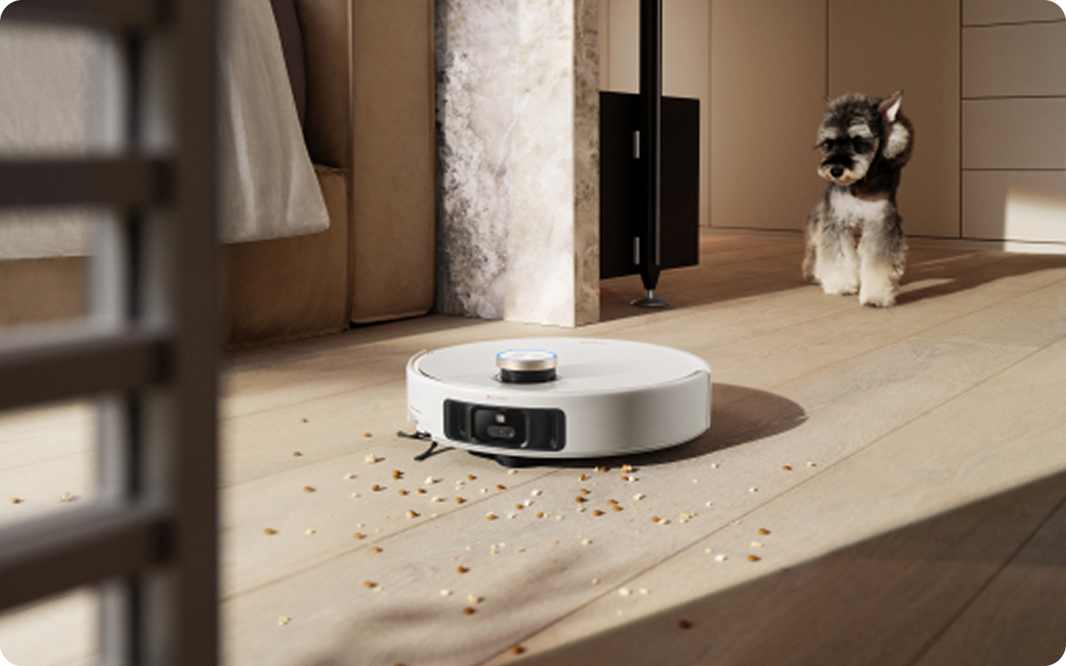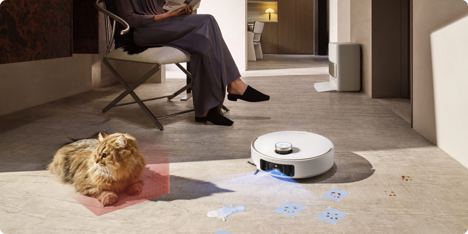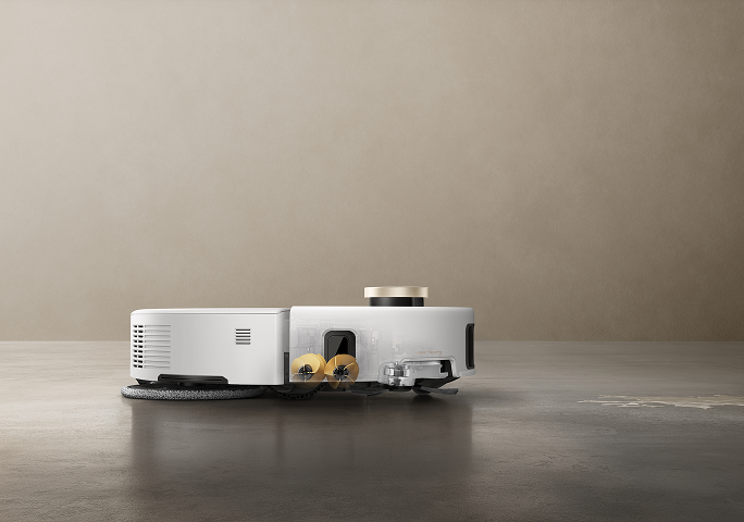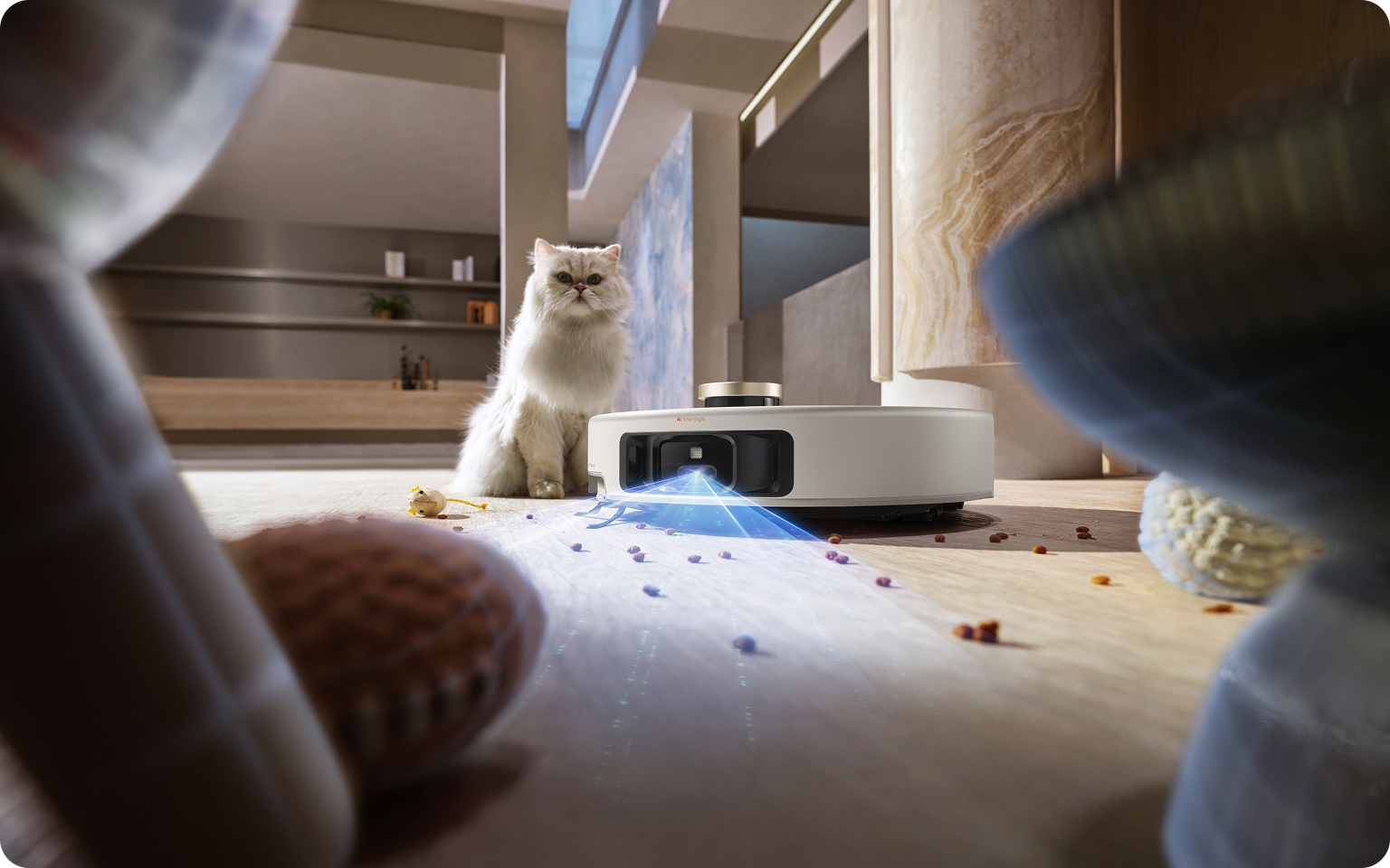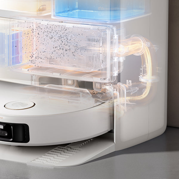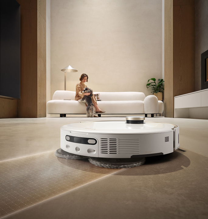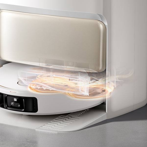 StepMaster™ System features robotic retractable legs that can lift the chassis, allowing it to easily cross over steps, thresholds, door tracks, U-shaped furniture legs, and small obstacles up to 6cm* high. It navigates complex home environments with ease for thorough cleaning and effortless return.