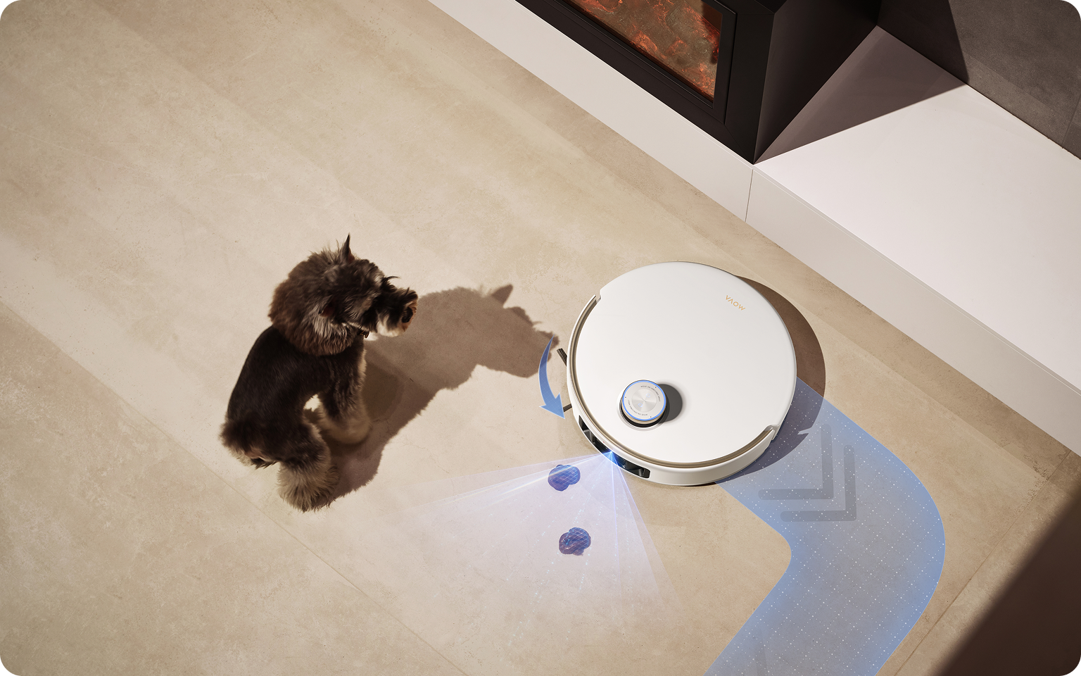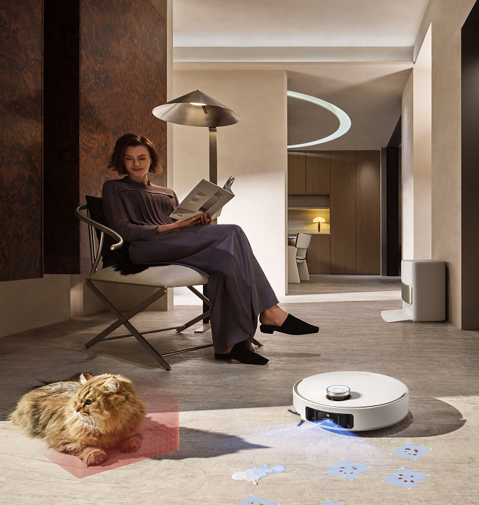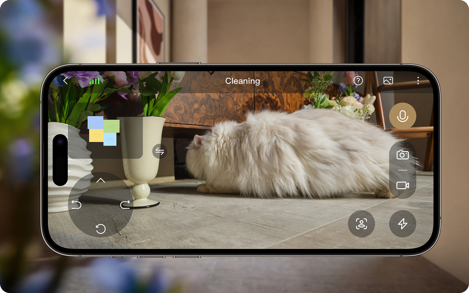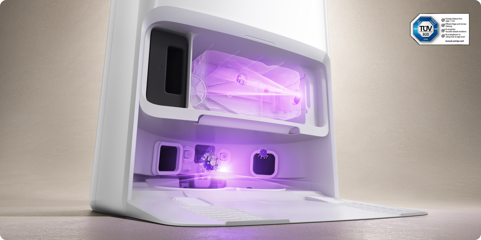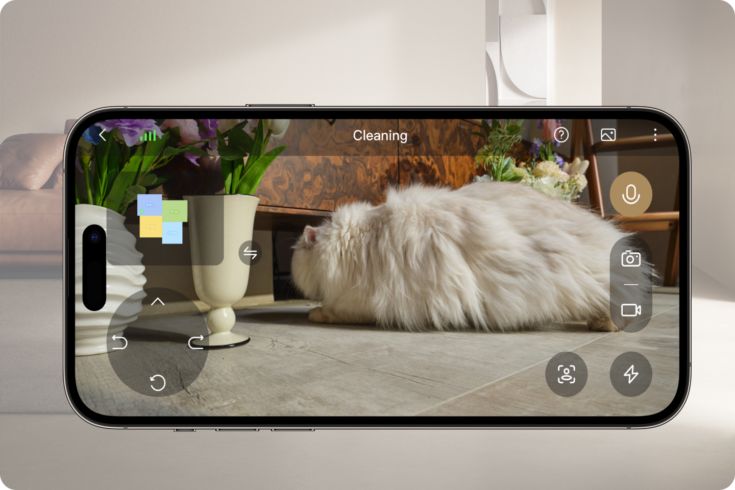 StepMaster™ System features robotic retractable legs that can lift the chassis, allowing it to easily cross over steps, thresholds, door tracks, U-shaped furniture legs, and small obstacles up to 6cm* high. It navigates complex home environments with ease for thorough cleaning and effortless return.