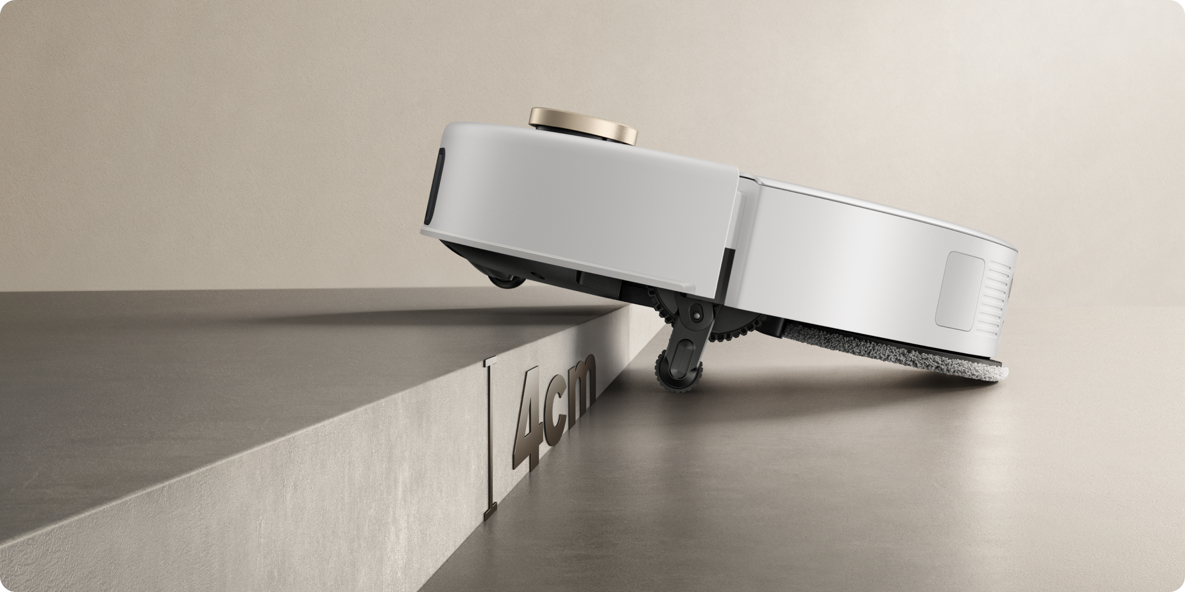 *6cm: This refers to the combined height of two steps. For a single obstacle or vertical step, it can overcome up to 4.2cm. Based on tests in our in-house lab. Actual results may vary depending on environmental factors.