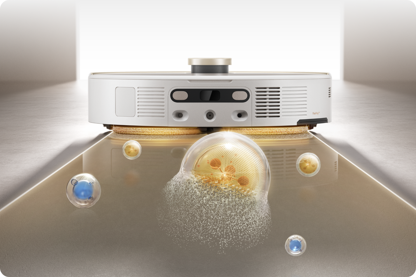 *260rpm: Based on tests in our in-house lab. Actual performance may vary depending on usage. The default mop speed is 180rpm. When solid or liquid dirt is detected, it automatically boosts to the max speed of 260rpm for enhanced cleaning.