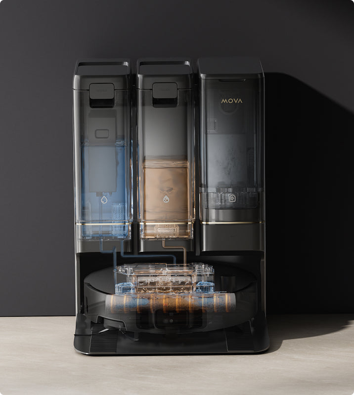 Introducing MOVA’s game-changing track-type roller mop cleaning technology. As the mop rolls, fresh water sprays to cleanse it, while dirty water is collected. Say goodbye to a dirty mop doing a dirty job, and welcome to the new era of fresh water cleaning: No more stains. Faster. Cleaner. Spotless floors!
