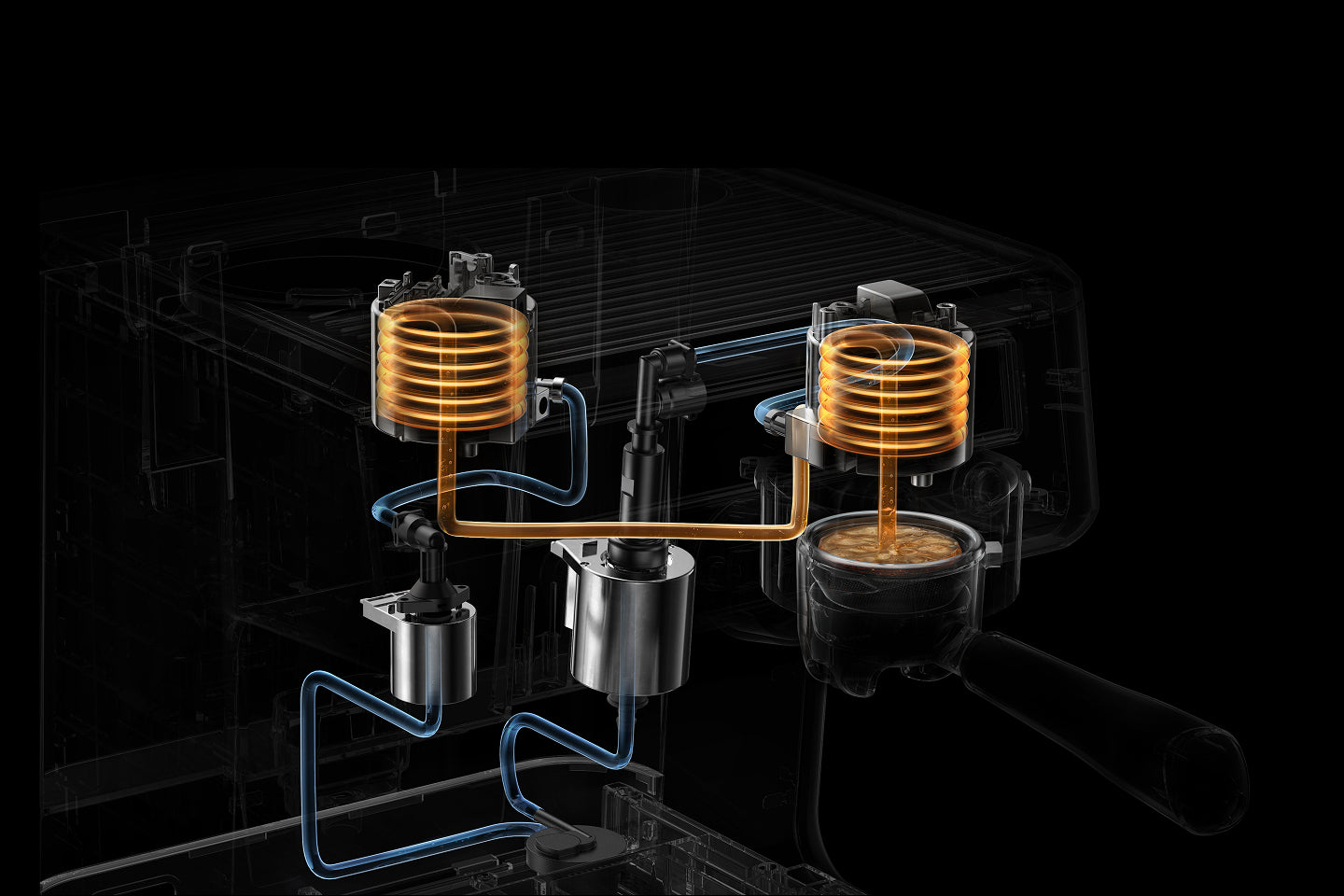 The machine features two dedicated boilers—one for espresso at 85–96°C* and one for steam. This ensures fast and thermally stable environment for extraction. Enjoy consistent flavour and barista-quality shots with stability and precision.